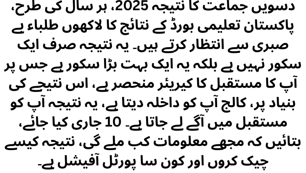 10th Class Result 2025,like every year, lakhs of students wait impatiently for the result of the Pakistan Board of Education.This result is not just a score but it is a very big score on which your future career depends.On the basis of this result, the college gives you admission.This result takes you ahead in your futureBased on this result you can get college and university scholarship.This month I got complete information regarding this year’s board results – when will class 10 be released, say when will I get the information, how to check the result and which portal is official